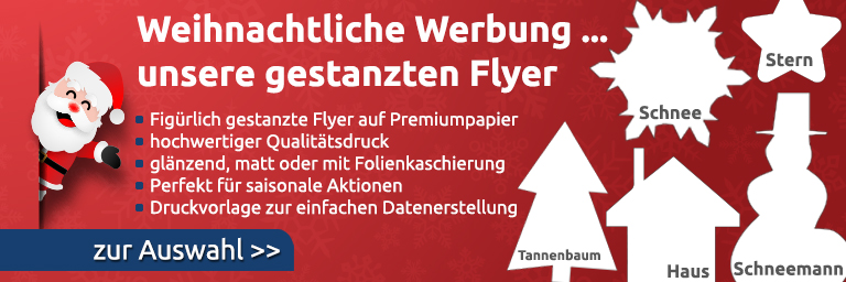 Flyer gestanzt drucken bei Ihrer Online Druckerei PapeDruck.de: Flyer als Figuren gestanzt. Damit hinterlassen Sie einen bleibenden Eindruck. Über 30 Formen und Figuren stehen Ihnen zur Auswahl. Wählen Sie einfach Ihr Wunschmotiv. Ganz egal ob Bäcker, Gastwirt oder Handwerker: Mit Ihren ganz individuell bedruckten und ausgestanzten Flyern bleiben Sie garantiert im Gedächtnis des Empfängers.